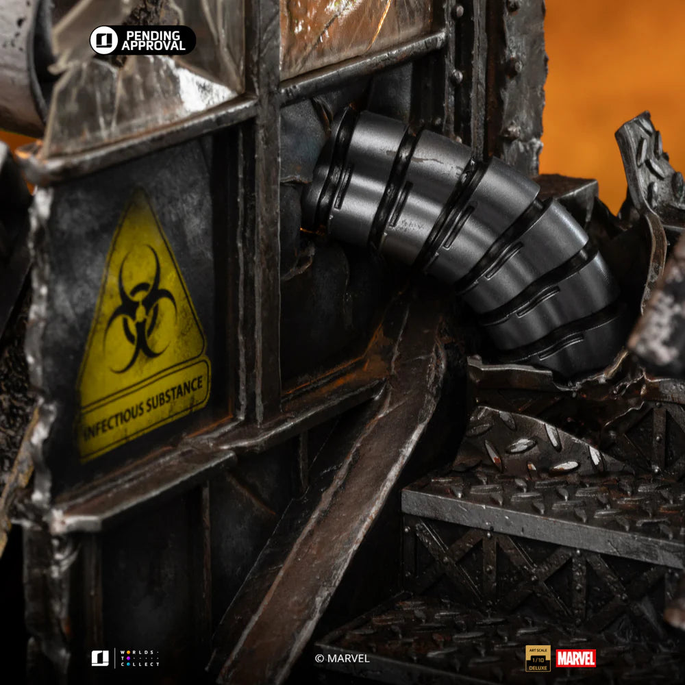 Con acabados premium y una base repleta de texturas y elementos narrativos, esta pieza destaca por su presencia en vitrina y su capacidad de convertirse en el centro de cualquier colección Marvel. Ideal para fans que buscan una estatua impactante y llena de personalidad.